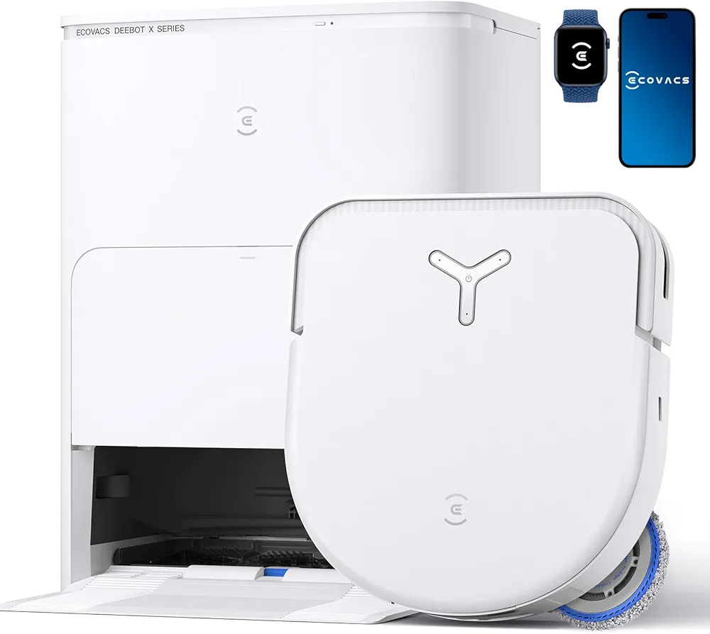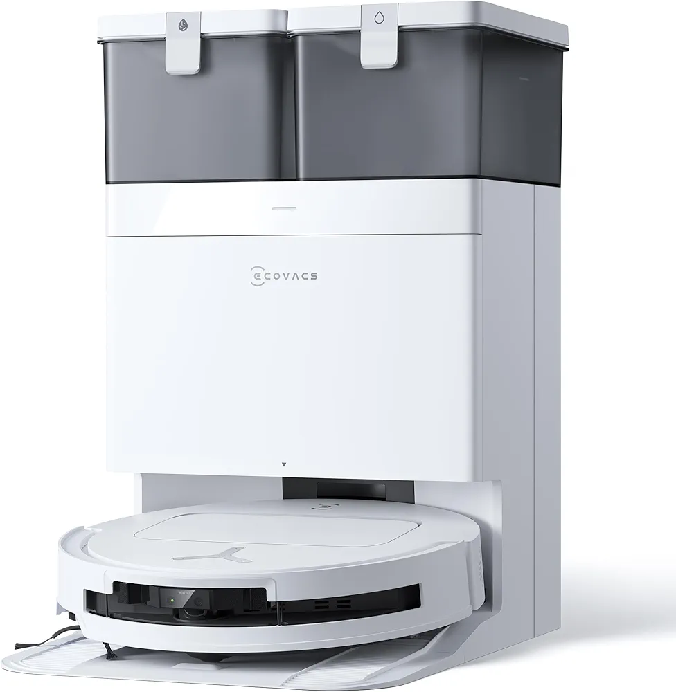 ECOVACS Aspirateur Robot DEEBOT X5 Omni, Robot Aspirateur Laveur avec Station, 12800Pa, ZeroTangle, Nettoyage Humide adaptatif TruEdge, Lavage à l’eau Chaude à 70°C, Levage des Patins de 15mm, Blanc