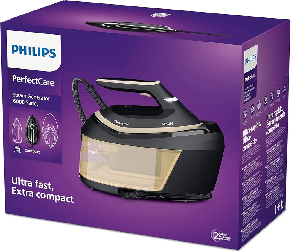 Philips PerfectCare 6000 Series Centrale Vapeur, Vapeur Puissante, Garantit 0 brûlure, Design Compact, Réservoir d’Eau Amovible de 1,8L, Semelle SteamGlide Advanced (PSG6064/80)