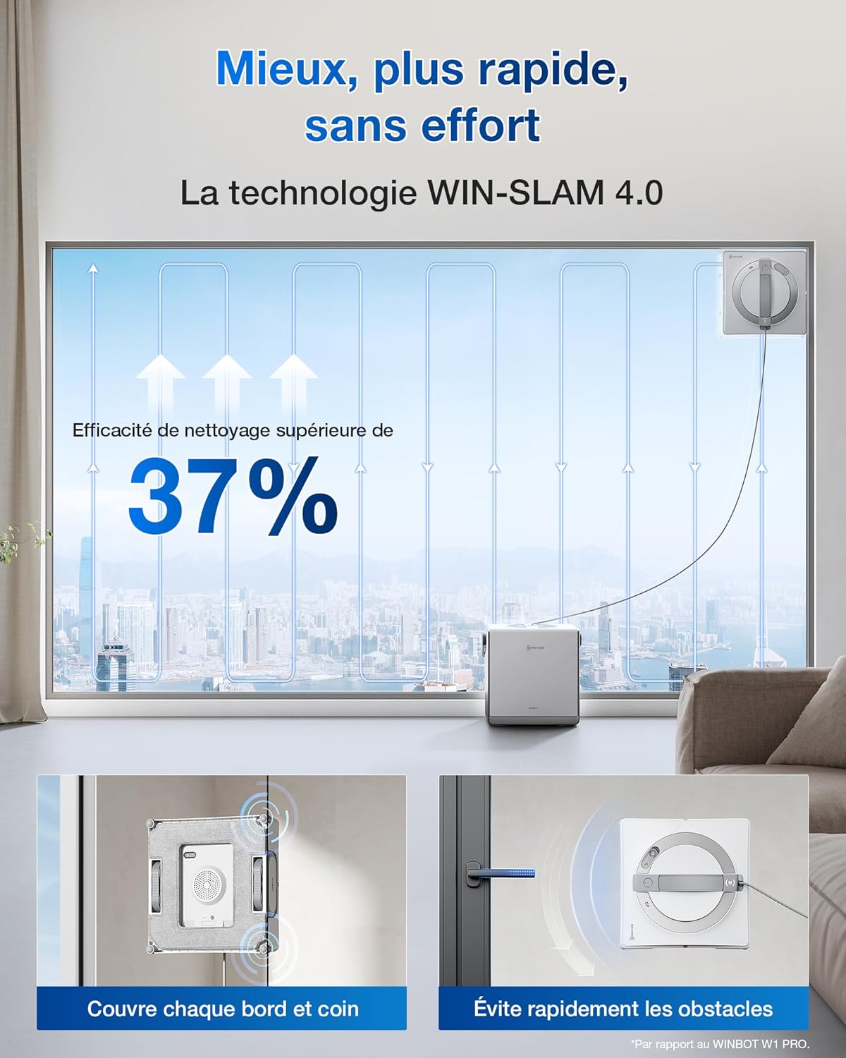 ECOVACS WINBOT W2 Pro Omni Robot Nettoyeur de vitres avec Station Multifonction, se Recharge Pendant Le Fonctionnement, buse à Triple Embout, système de Protection à 12 Niveaux