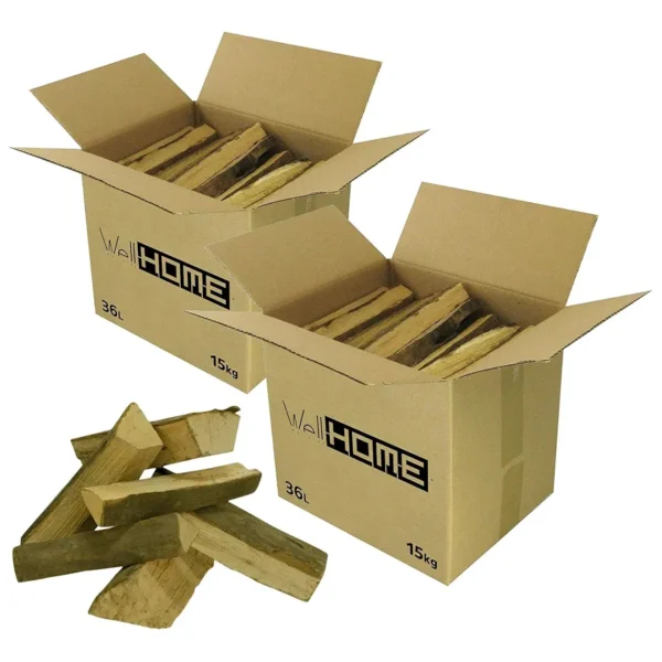 Well Home – Lot de 2 Caisses à Bois de Chauffage 30Kg (2 x 15Kg) de Bois de Hêtre Sec pour Cheminées et Barbecues / Bâtons de 30-50cm de longueur