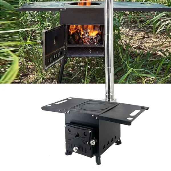 CDZHLTG Réchauds de Tente Camping Poêle à Bois Portable, Pliable Stove pour Chauffage et Cuisine