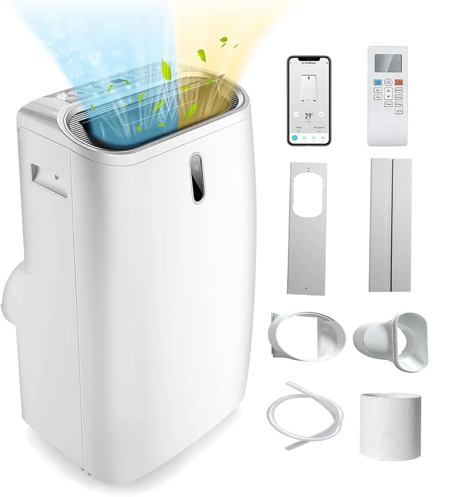 SereneLife Climatiseur Mobile Silencieux,7K BTU, Climatiseur Portable 3-en-1 avec Fonction Déshumidificateur Intégrée, Mode Ventilateur, Télécommande, Kit d’Évacuation Complet pour Fenêtre,Blanc