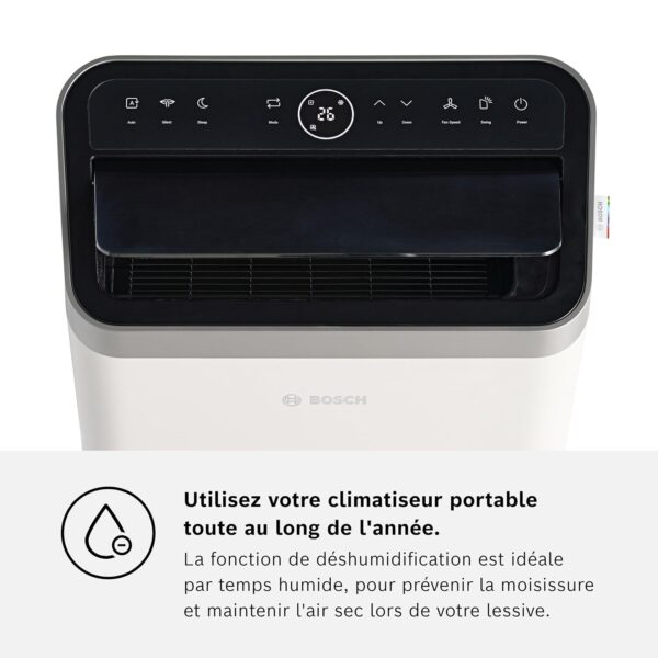 Bosch Cool 4000 Portable AC – 3 en 1 Climatiseur, Déshumidificateur, Ventilateur – 2,6 kW pour les pièces jusqu’à 35m² – Avec Mode Auto, Mode Silencieux et Mode Veille (48 db (A)) [Classe A+]