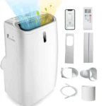 SereneLife Climatiseur Mobile Silencieux,7K BTU, Climatiseur Portable 3-en-1 avec Fonction Déshumidificateur Intégrée, Mode Ventilateur, Télécommande, Kit d’Évacuation Complet pour Fenêtre,Blanc