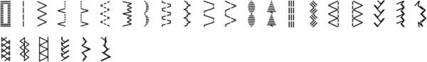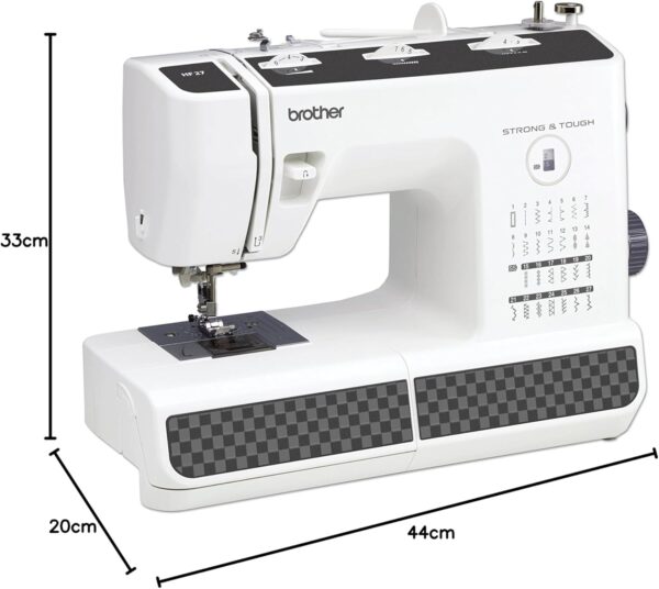 - 27 points de couture utilitaires & décoratifs (droit, zig-zag, élastique, assemblage, …) dont 1 boutonnière 100% automatique en 1 seule étape à la taille du bouton.
