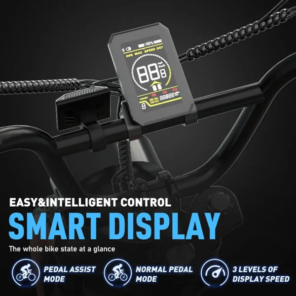 - 4. Fonctionnalités conviviales et écran LCD intuitif : notre vélo électrique est équipé de fonctionnalités conviviales telles qu’un écran LCD pratique qui fournit des informations en temps réel sur la vitesse, la distance, le niveau de la batterie et plus encore.