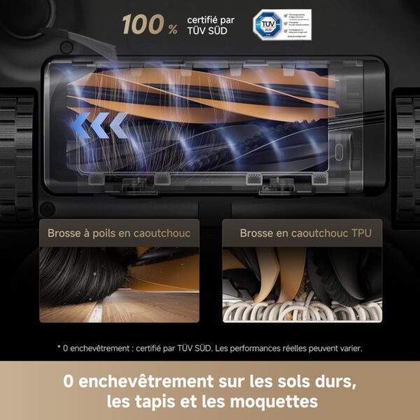 - [Élimination efficace des poils et des cheveux pour une brosse sans nœuds] Notre toute nouvelle brosse duo démêlante HyperStream est dotée d’une brosse à poils en caoutchouc et d’une brosse en caoutchouc TPU pour capturer efficacement les débris dans les interstices du sol et sur les tapis/moquettes, tout en évitant les nœuds et en préservant les performances de nettoyage