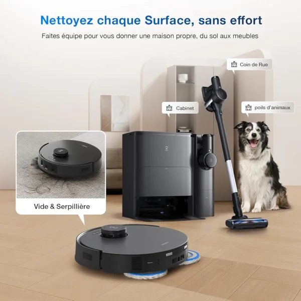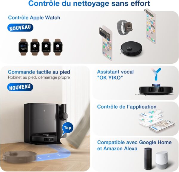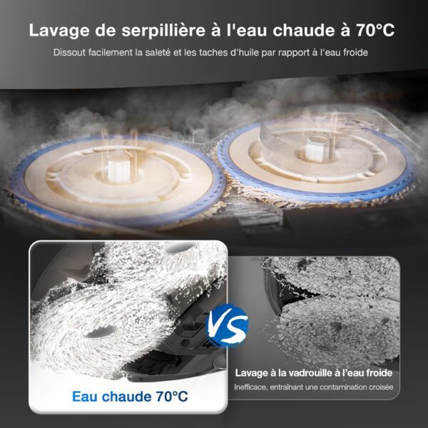| Caractéristiques | Automatic Dust Collection, Intelligent Mop Lifting, Auto Mop Washing, Self-Refilling, Advanced Custom Cleaning |
