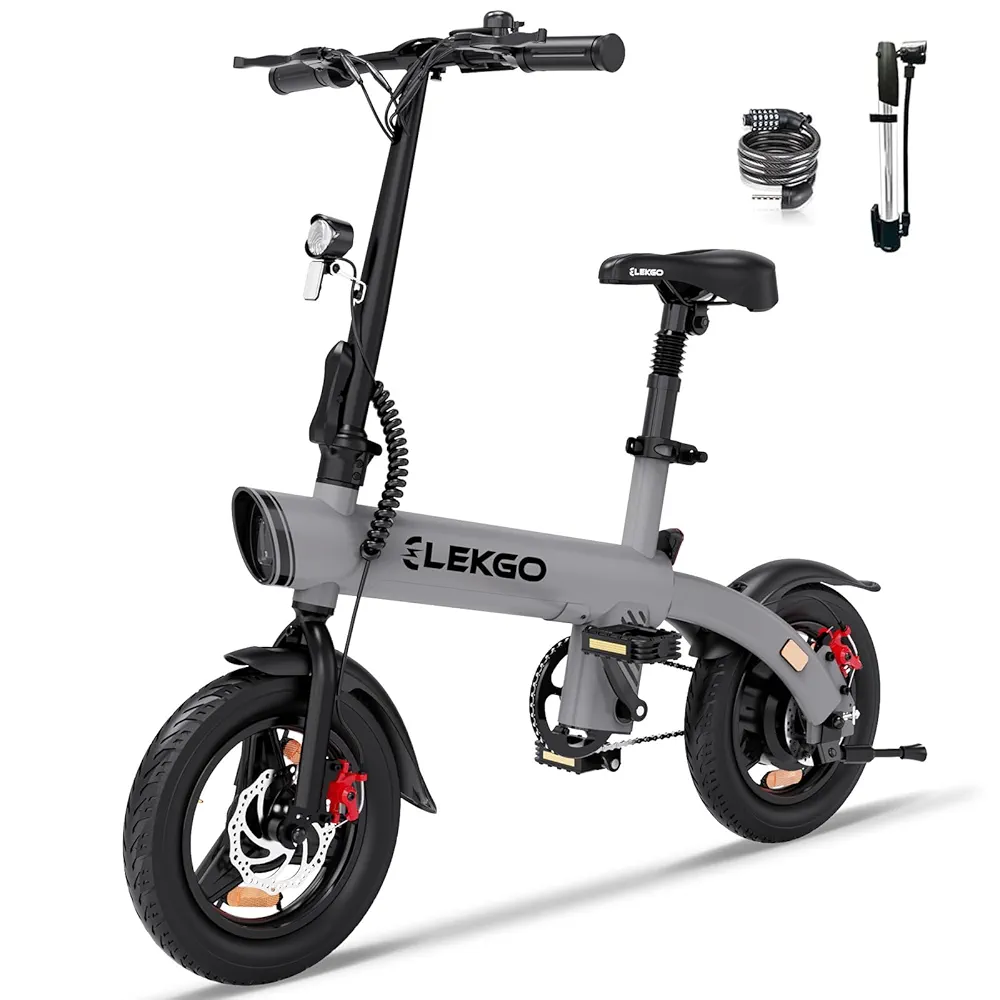 - Configuration améliorée: ELEKGO EG01 vélo électrique est équipé de pneus de 14 pouces, d’une batterie d’une capacité de 36 V/7,8 Ah et d’un moteur de 250 W. Les freins à double disque avant et arrière améliorent considérablement la sécurité, et les feux avant et arrière assurent votre sécurité lorsque vous voyagez la nuit