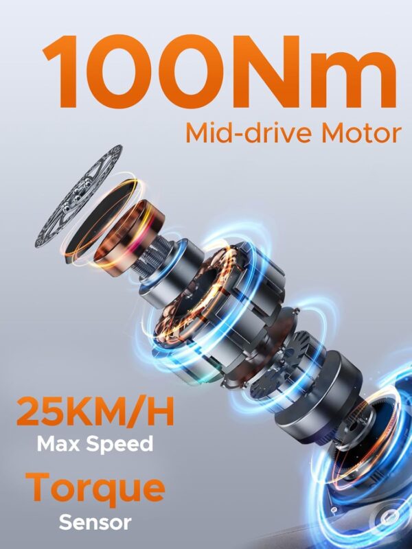 - ★250W 100Nm moteur central : le moteur central de 250W peut fournir un couple de 100 Nm, a une excellente capacité de montée et la puissance du capteur de couple rend la conduite plus facile. Grâce à sa position centrale, il assure un meilleur équilibre et un meilleur contrôle, rendant le LE20 agile et réactif, même à pleine charge.