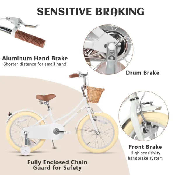 - 【Segura y duradera】- Los frenos delanteros y traseros hacen que aprender a montar en bicicleta sea más fácil y seguro.El protector de cadena cerrado evita que su hijo toque la cadena.La construcción duradera de acero hi-ten ofrece fiabilidad a largo plazo, respaldada por una garantía de por vida del cuadro.