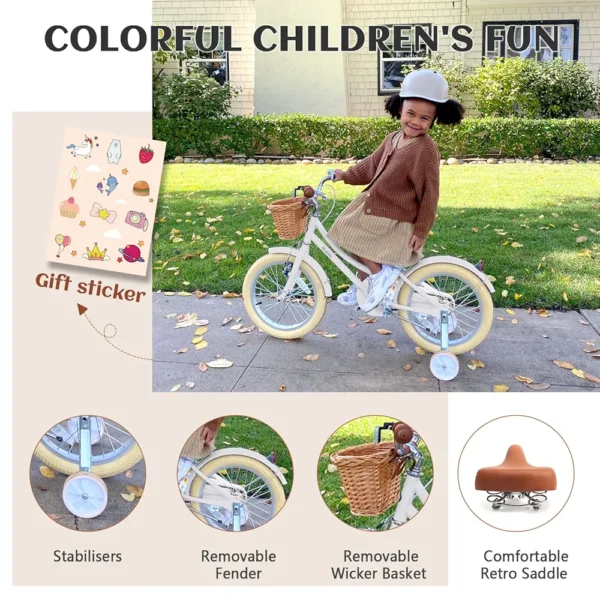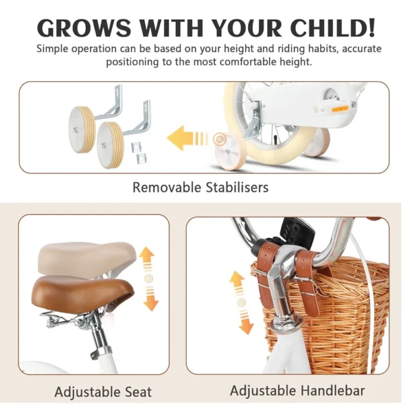 - 【Componentes bonitos】 – Puños de manillar suaves, reflectores, guardabarros y una campana están incluidos. Cesta de mimbre extremadamente linda para que los niños empaquen animales de peluche o bocadillos.