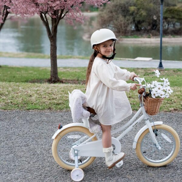 Glerc Little Molly Vélo rétro 12-20″ pour enfants de 2 à 13 ans avec panier en osier et roues stabilisatrices/béquille, plusieurs couleurs disponibles