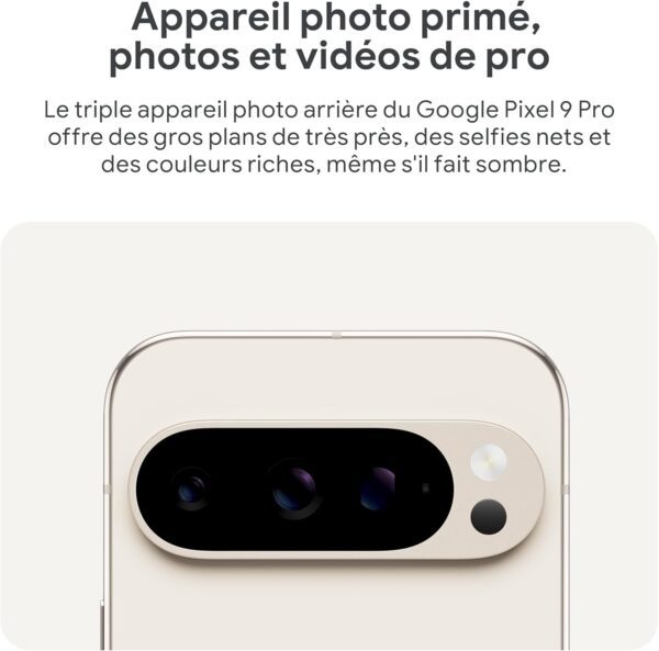 • Le triple appareil photo arrière du Google Pixel 9 Pro offre des gros plans de très près, des selfies nets et des couleurs riches, même s’il fait sombre.