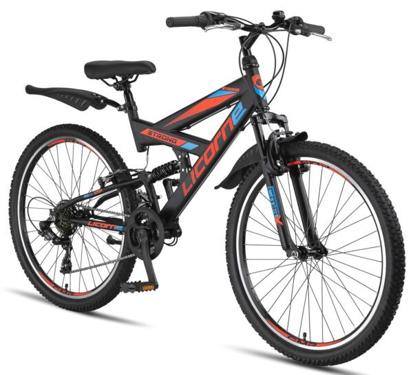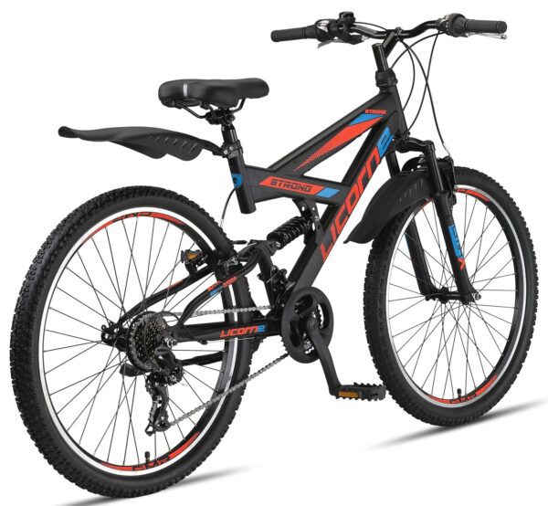 Licorne Bike VTT en V de qualité supérieure de 24 et 26 pouces – Vélo pour garçons, filles, femmes et hommes – 21 vitesses – Suspension complète
