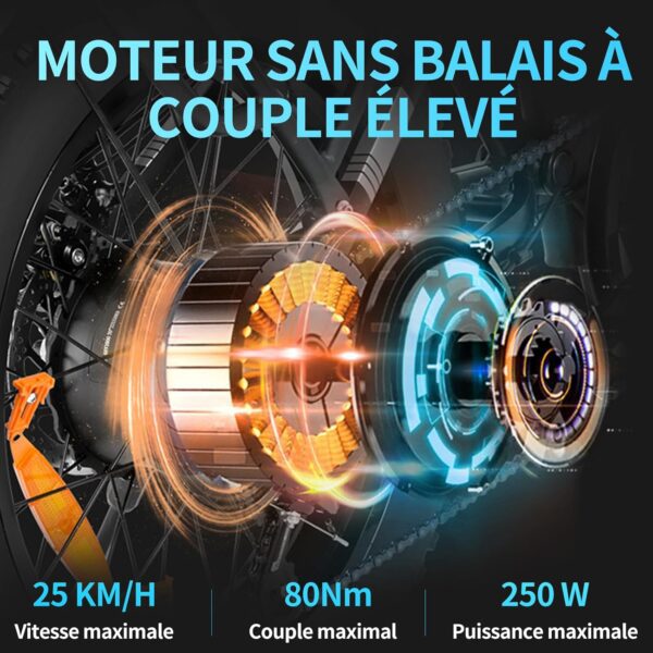 - 【80 Nm Moteur à Couple Élevé】Le vélo électrique Ridstar Q20 Mini est équipé d’un moteur sans balai à grande vitesse de 250 W avec une vitesse maximale de 25 km/h, ce qui est conforme à la réglementation routière. Le couple de pointe de 80 Nm peut facilement conquérir n’importe quel terrain, sans craindre les pentes raides, adapté au cyclisme hors route, aux déplacements urbains, au cyclisme de loisir et ainsi de suite.