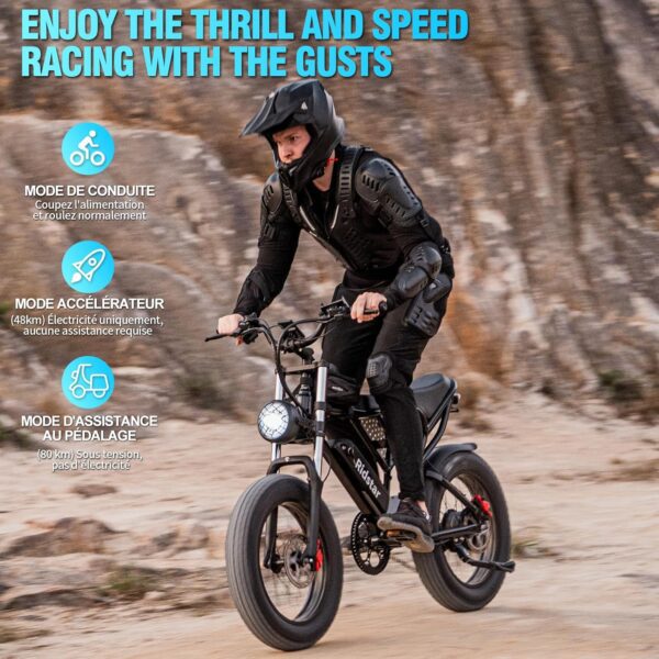 - 【Autonomie 80 km】Vélo Électrique Ridstar Q20 Mini équipé de 3 modes de conduite (vélo/accélérateur seul/assistance au pédalage), avec une autonomie maximale de 40 km à l’accélérateur seul et une autonomie maximale de 80 km à l’assistance au pédalage.(Conditions de test d’autonomie : 20°C ambiant/charge de 75 kg/conditions de route urbaine.)
