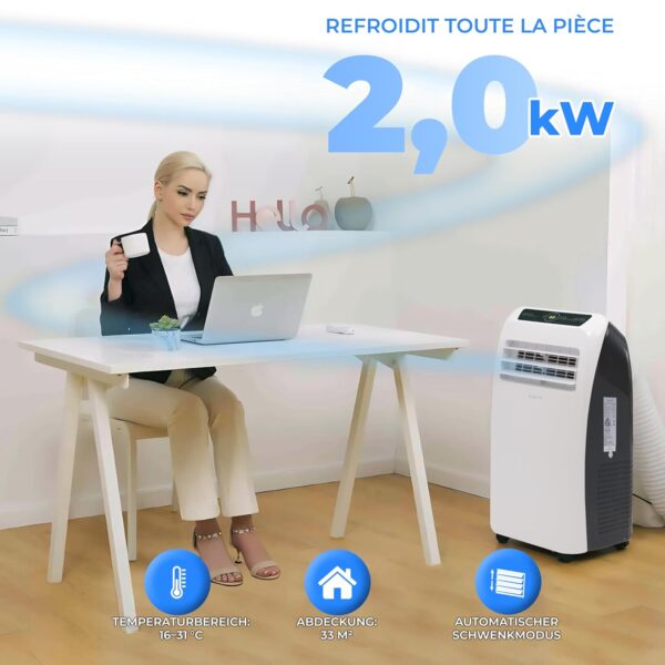 • DÉSHUMIDIFICATEUR INTÉGRÉ : Vous n’obtenez pas seulement l’effet de refroidissement de la climatisation mobile, mais vous aide également à réduire les niveaux d’humidité, ce qui représente une économie financière et d’espace considérable !