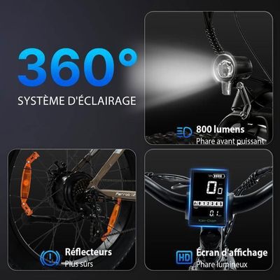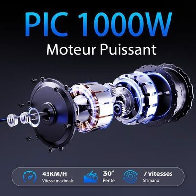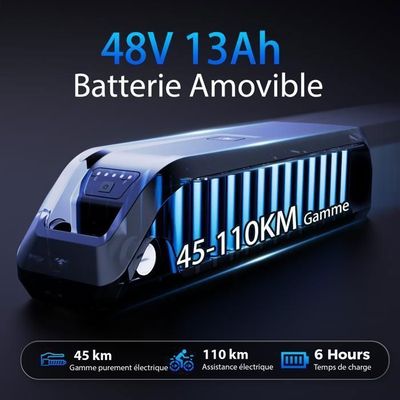 SPATIAL PARROT Vélo électrique est un vélo électrique performant et durable conçu pour les navetteurs urbains et les amateurs de plein air. Avec son puissant moteur de 500 W(PIC 1000W),fournit 80 Nm de couple et sa batterie longue durée de 48V 13Ah, ce vélo électrique offre une autonomie impressionnante allant jusqu’à 45-110 km sur une seule charge, savourez divers plaisirs lors de vos voyages et profitez d’une conduite globalement améliorée – à tout moment, n’importe où. Le capteur de couple garantit une assistance réactive, tandis que 5 niveaux d’assistance (PAS) réglables (12–43 km/h) permettent d’adapter le soutien à chaque situation, des balades tranquilles aux trajets urbains efficaces. Acquiers sans effort tous les terrains grâce aux pneus increvables de 26*4 pouces de l’E Bike. L’excellente fourche avant et la suspension de la tige de offrent un confort incomparable et assurent une conduite sans faille, même sur les routes cahoteuses.