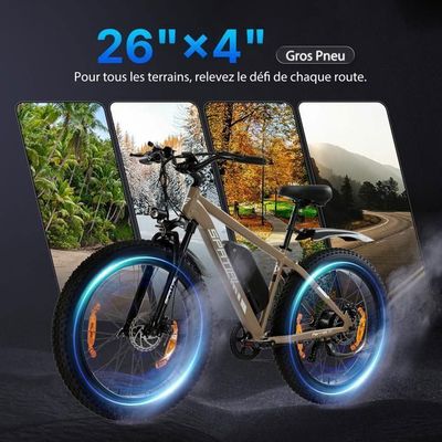 SPATIAL Vélo électrique 26″ 4 Fat Tire-Moteur 1000W-VTT Ville E-Bike- Batterie