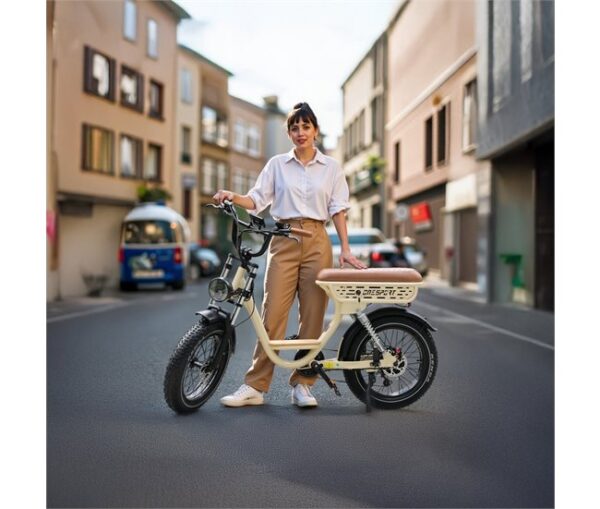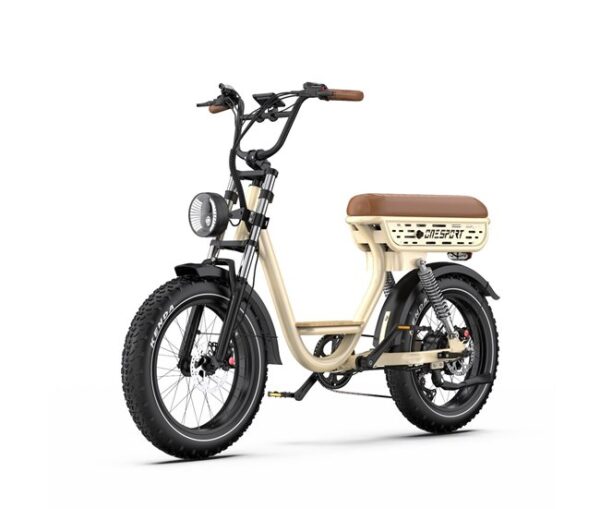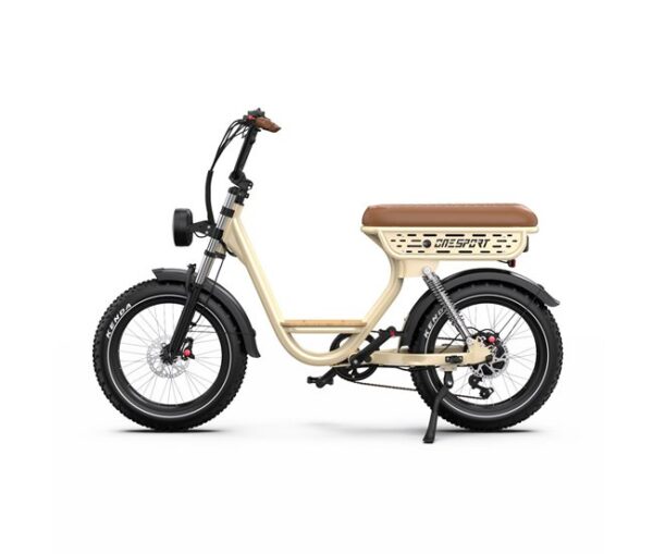 Vélo électrique ONESPORT W77 – Puissance 250 W, batterie 48 V 18 Ah, pneus 20 pouces, freins hydrauliques – Beige