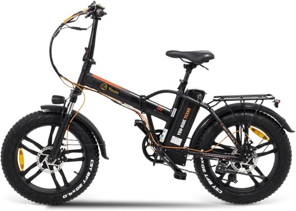 - Design pliable et polyvalent pour tout terrain : le vélo électrique Youin Texas se plie facilement, facilitant son rangement et son transport dans des espaces restreints. Idéal pour la mobilité urbaine et les aventures hors route grâce à ses roues FAT de 20″ qui offrent une stabilité sur le sable, la neige et l’asphalte.